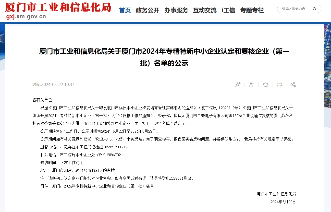 5月22日,厦门市工业和信息化局公布了《关于厦门市2024年专精特新中小企业认定和复核企业(第一批)名单的公示》,厦门k豆kdpay钱包AI网络科技有限公司成功顺利获得2024年度厦门市专精特新中小企业认定。