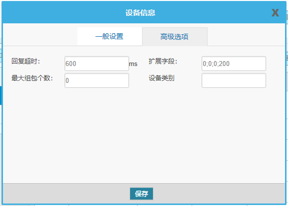 高级配置内的设备扩展字段默认为0,如需调节静止时间(单位ms),输入0;0;0;XXX