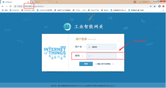 打开浏览器输入网关地址192.168.2.1,登录密码默认为123456(如有修改请按实际填写)