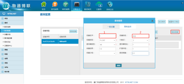 填写完毕后返回网关数据配置界面“添加变量”的数据参数