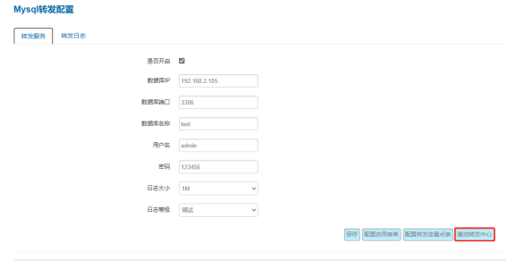 配置完成后,点击“重启转发中心”,使配置生效