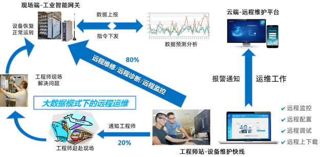 借助物联网网关可以开通临时的远程维护通道,工程师就能远程进行程序上下载,也能进行调试与升级,减少设备故障带来的损失与浪费。