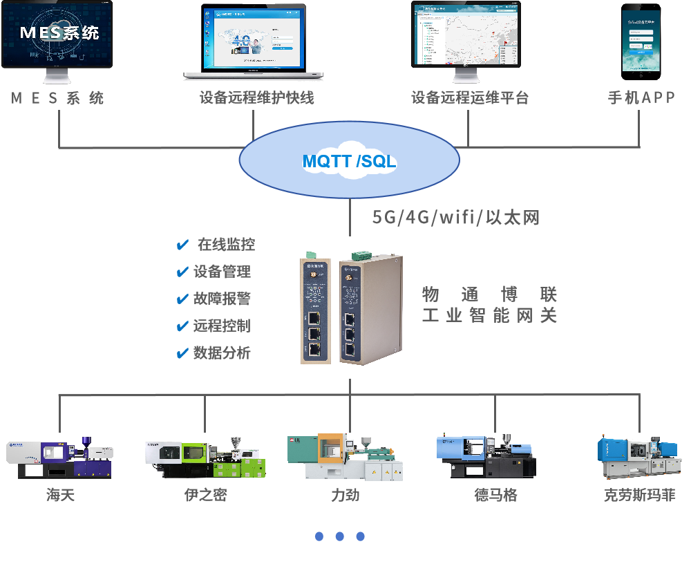 1、受限于设备通信限制,许多注塑机数据采集不上来,也没有联网手段,导致MES系统、ERP系统等缺乏准确可靠的数据支持。