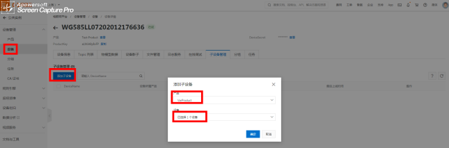 项目生成后,点击“设备管理”选择“设备”,选取右边“添加设备”。