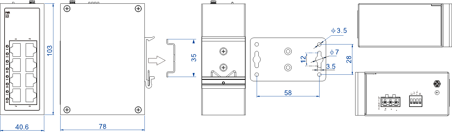 WS1008E-8T为8口百兆非网管型工业以太网交换机。该产品给予百兆电口接口,采用DIN导轨式或壁挂式安装方式,能满足不同应用现场的需求。