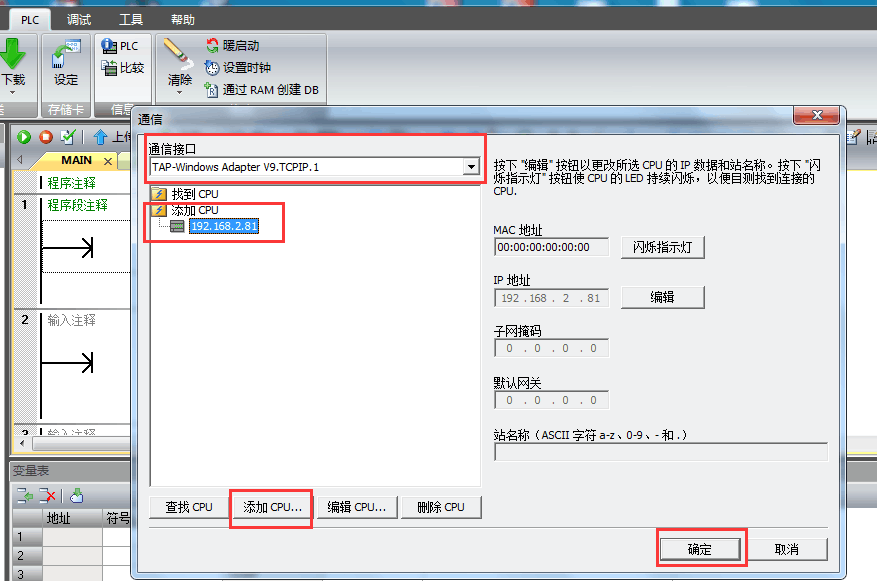 l 通信接口:TAP-Windows Adapter V9.TCPIP.1