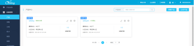 点击设备管理——产品