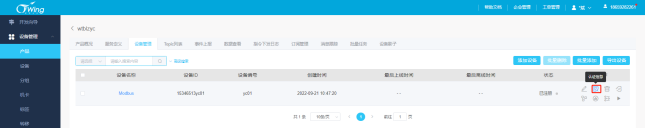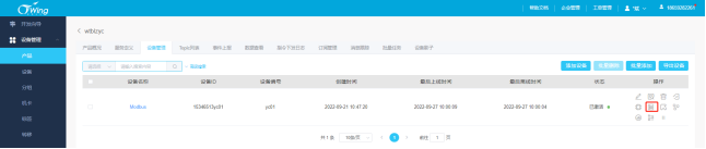 (三)创建设备 进入产品详情页,点击设备管理——创建设备