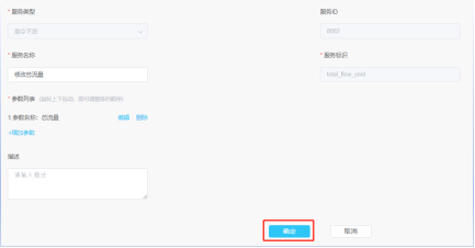 注意:服务类型为”指令下发”时,服务标识命名规则为:属性标识_cmd。 服务类型为”指令下发响应”时,服务标识命名规则为:属性标识_resp。 点击增加参数