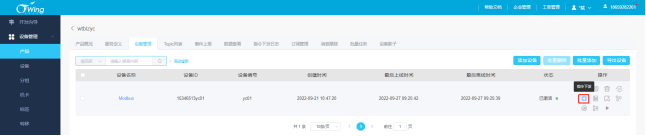 (二)指令下发 在产品——设备管理页面对设备进行操作,点击“指令下发”