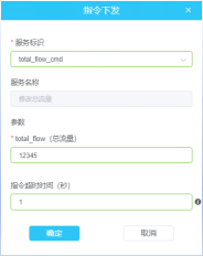 服务标识选择要控制的点位,参数填写要写入的值,指令超时时间填写1(秒),点击确定执行写入。