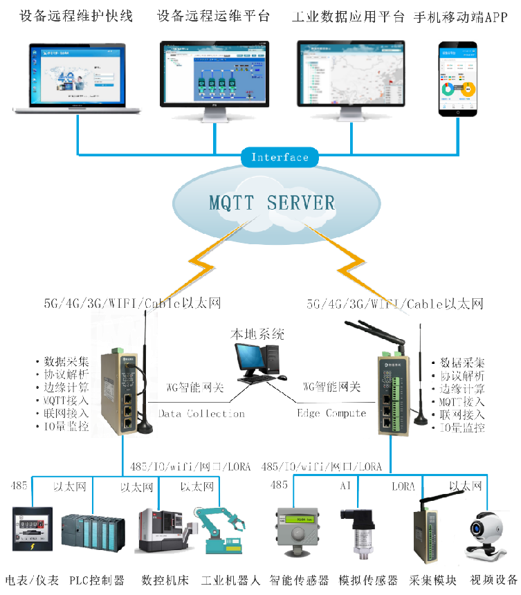 传统工业上大都采用RS-232、RS-485串口与电脑进行通信传输,现还是有大量的新的RS485设备在生产和投入运行。RS-485接口具有良好的抗噪声干扰性,长的传输距离和多站能力等上述优点就使其成为首选的串行接口。但是RS485通信的最远的短离也只有1.2KM,无法实现远程控制,对于分布式的设备来说,环境不适合布线或者布线成本高,数据采集远程监控存在问题。那么如何解决这个问题呢?